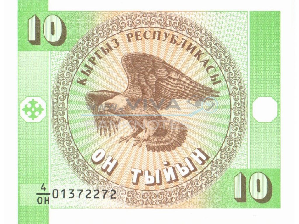 10 Tyiyn 1993 UNC Brown on pale green and brown-orange underprint. Bald eagle at center. Back: Ornate desing at center. Watermark: stylized eagle. 90x70 mm