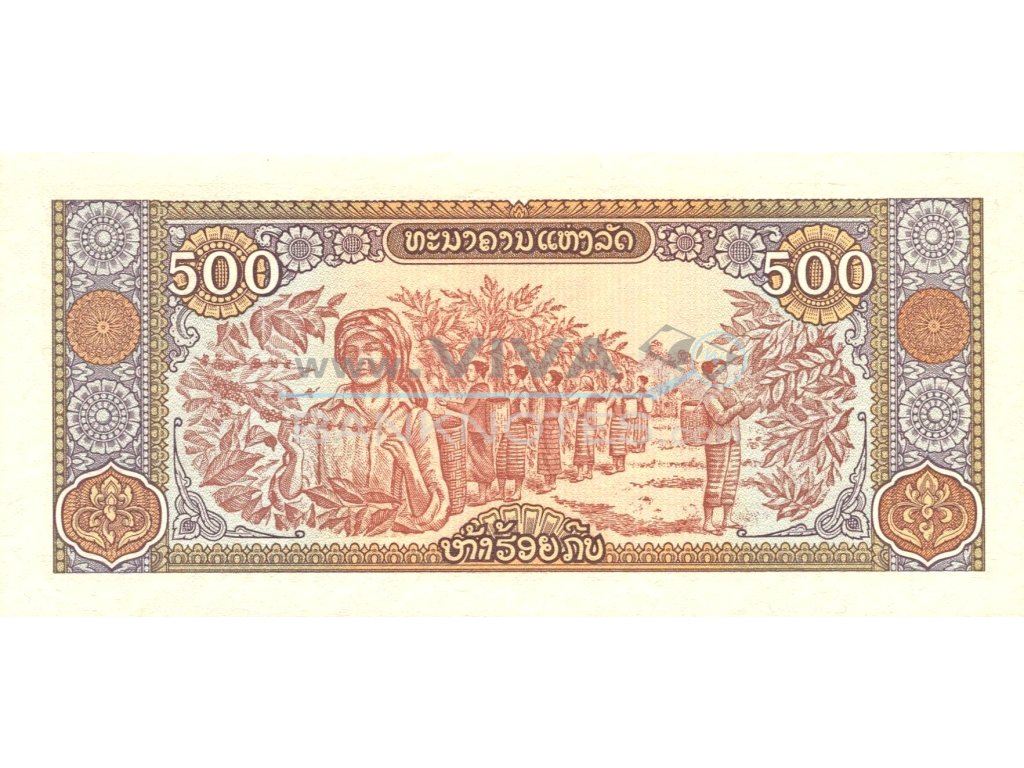 500 Kip 1988 UNC. Dark brown, purple and deep blue on multicolor underprint. Modern irrigation systems at center, arms above. Back: Harvesting fruit at center. Watermark: Stars, hammer and sickles. 150x70mm